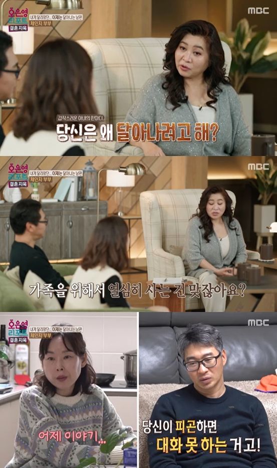 24일 방송된 MBC '오은영 리포트=결혼지옥'(이하 '결혼지옥')에서는 아내의 말이면 모든 게 귀찮은 남편과 그런 남편에게 사랑받고 싶은 아내, '체인지 부부'가 등장했다.
