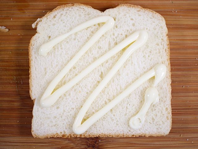 식빵을 준비해서 한쪽에 마요네즈를 발라요.