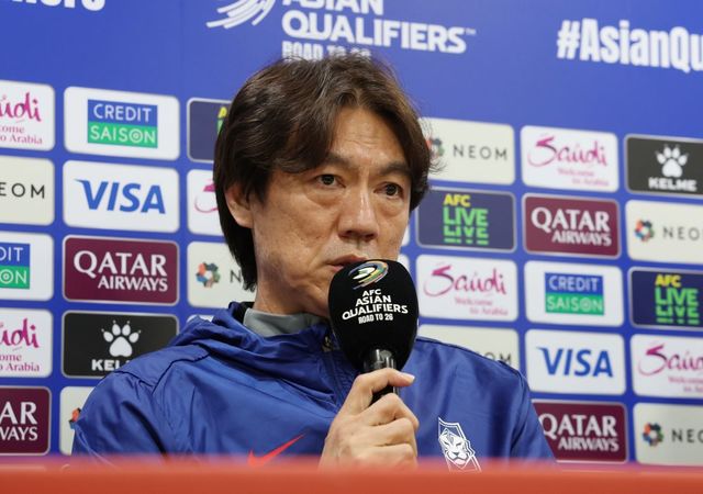 대한민국 축구대표팀 홍명보 감독이 24일 오후 경기 수원시 영통구 수원월드컵경기장에서 요르단전 관련 기자회견을 하고 있다. / 뉴스1