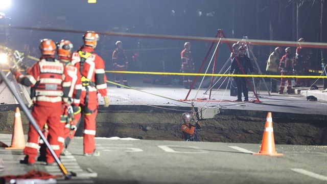 25일 뉴스1 보도에 따르면 이날 오전 3시 32분쯤 소방 당국은 싱크홀 아래에서 매몰된 오토바이를 확인하고 인양을 시도했다.