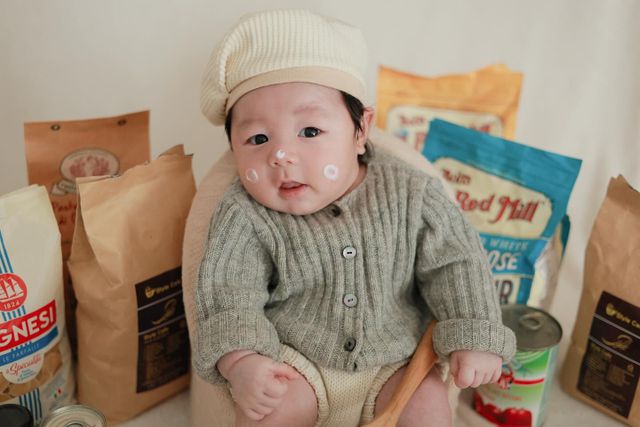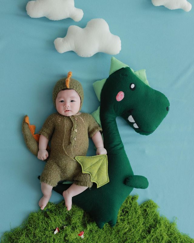 사진 속에는 심형탁 사야의 아들 하루 군의 깜찍한 미모가 담겨 있다. 스웨터와 모자를 쓰고 의자에 앉는가 하면 다른 사진에서는 용띠 해에 태어난 것을 기념한 용 코스튬 의상으로 사랑스러움을 자아냈다.