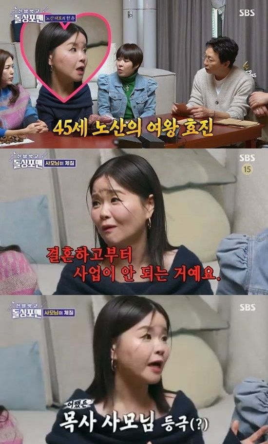 김효진은 "남편이 결혼 후에 사업이 잘 안 됐다. 위기와 힘든 상황이 있었다"면서 "그러다 남편이 갑자기 어린 시절 꿈을 펼치겠다면서 목사님이 되겠다고 하더라"고 얘기했다.