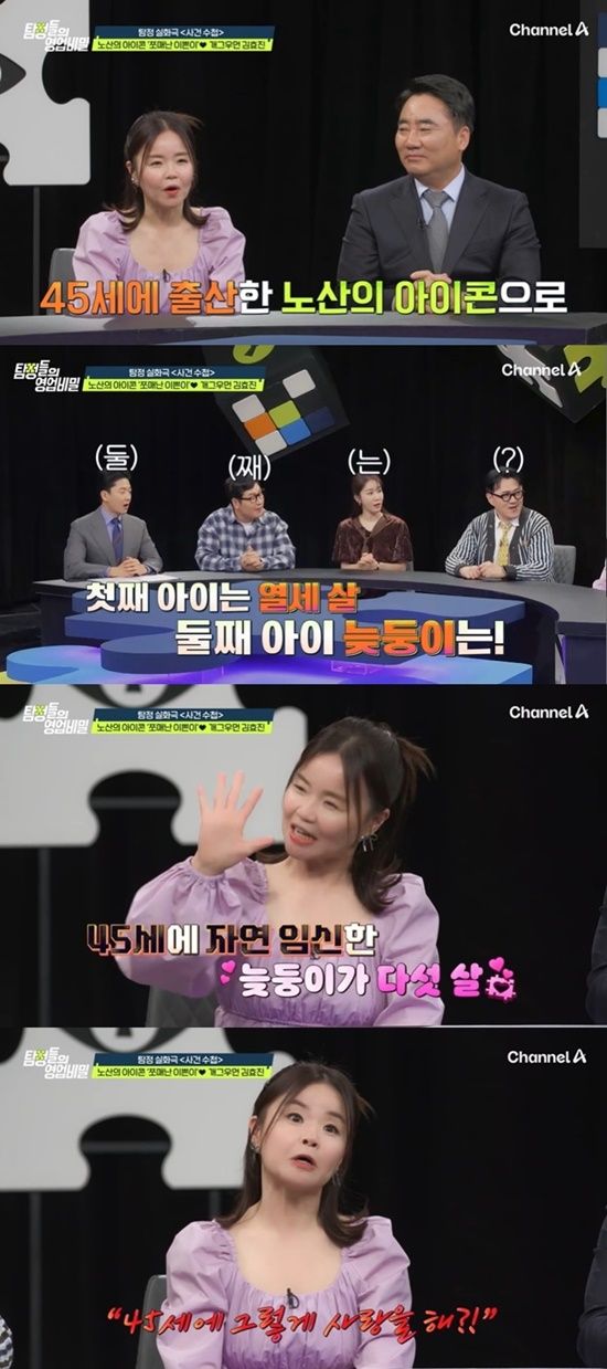 이날 김효진은 45세 당시 자연 임신에 성공한 사연을 전하며 '노산의 아이콘'으로 등극한 소감을 전했다.