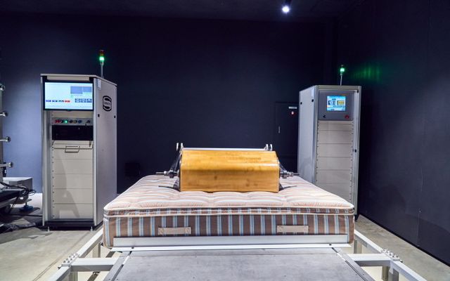 내구성 테스트도 남다르다. 109kg의 롤러가 매트리스 위를 10만 번 넘게 구르며 내장재의 변형과 스프링의 손상 여부를 확인한다.