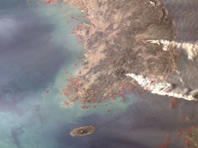 텔레픽스 산하 데이터 분석 기관인 ‘지속가능한 지구를 위한 연구소’는 22일 오후 5시 15분께 천리안 해양관측위성(GOCI-II)으로 촬영한 한반도 영상을 분석한 결과, 총 3개 지역에서 뿌연 연기가 피어오르는 장면을 포착했다. 같은 기간 산림청이 발표한 산불 발생 정보에 따르면 21~23일 사이에 국내에서 총 48건의 산불이 발생했으며, 이 중 대응 단계가 3단계로 격상된 지역은 경남 산청군, 경북 의성군, 울산광역시 울주군이다.