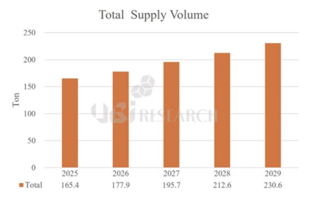 또한 “중국 패널 업체들의 IT용 OLED 양산 확대까지 더해지면서 발광재료 시장은 2028년에는 200t을 넘어설 것”이라고 내다봤다.