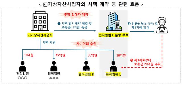 금감원에 따르면, 2024년 6월 빗썸의 현직 임원 A씨는 본인의 사용 목적에 맞춰 고급 사택을 제공받기로 결정했다. 이 사택의 임차보증금은 30억원에 달했으며, A씨는 이해상충이 우려되는 상황에도 이를 개인적인 이익을 위해 사용했다. 또한, 2023년 12월에는 빗썸의 전직 임원 B씨가 개인적으로 분양받은 주택을 빗썸이 임차하는 것처럼 가장하여 11억원의 보증금을 지급받았다. 이후 B씨는 이 주택을 실제로 빗썸에 사택으로 제공하지 않고 제3자에게 임대하여 28억원의 보증금을 수취했다. B씨는 빗썸 설립 초기부터 수년간 대표이사를 역임했으며, 현재는 등기임원은 아니지만 여전히 ‘사장’ 직함을 가지고 고문 역할을 수행 중이다.