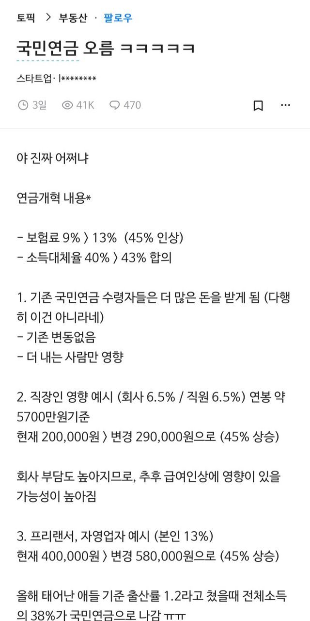 국민연금 개혁때문에 화난듯...