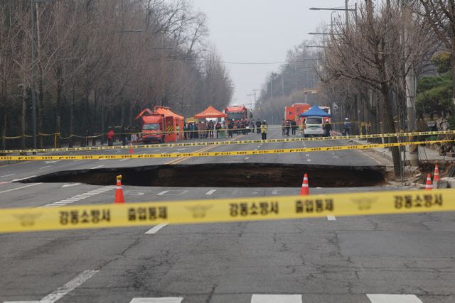 싱크홀의 깊이나 크기에는 변화가 거의 없는 것으로 확인됐다. 지난 24일 오후 6시29분쯤 사고 발생 직후 싱크홀 크기는 지름 18~20m, 깊이 20m 규모였다.