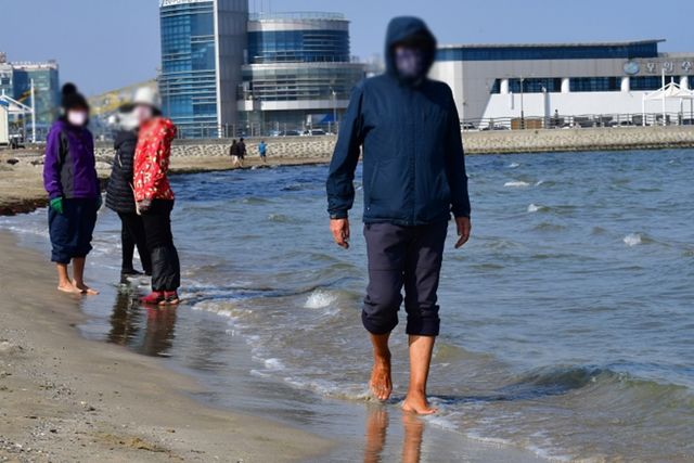 최근 인천 또는 부산에 위치한 해수욕장에는 맨발로 바닷가를 걷는 이들을 쉽게 볼 수 있다. 주로 발목이 잠길 정도의 물에서 걷는 모습으로, 해변가를 걷는 이들의 연령대는 비교적 높은 편.