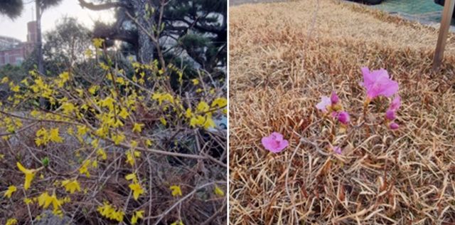 한편 제주기상청 서귀포관측소는 25일 기준, 계절관측용 개나리가 평년보다 7일 늦게 만발했고, 진달래도 8일 늦게 개화했다고 밝혔다.