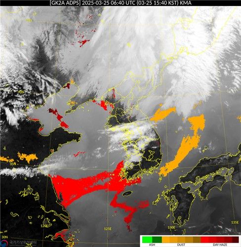 오후 3시 기준 미세먼지 농도를 보면 강원과 제주는 '나쁨' 수준, 나머지 지역은 '매우 나쁨' 수준이다. 대부분 지역에 미세먼지주의보가 내려졌고, 전북 익산·완주·전주에는 미세먼지경보가 발령됐다.