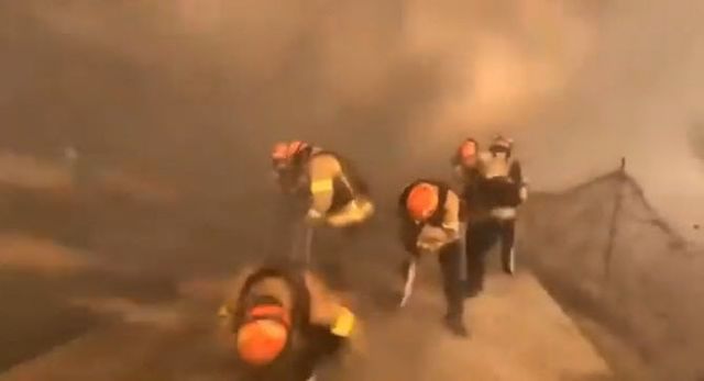 이 영상에는 강풍에 불길이 거세진 상황에서 고군분투하는 소방관들의 모습이 그대로 담겼다.