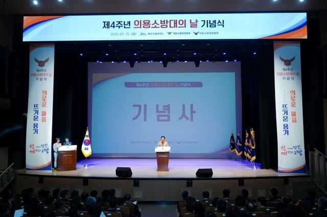제주특별자치도 소방안전본부는 25일 오전 10시 제주학생문화원 대극장에서 ‘언제나 국민곁에 하나되는 의용소방대’를 주제로 제4주년 의용소방대의 날 기념식을 개최했다.
