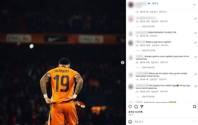 호주전 패배 이후 팬들의 분노는 클라위버르트 감독을 넘어 그의 아들 저스틴 클라위버르트(본머스)에게까지 번졌다.