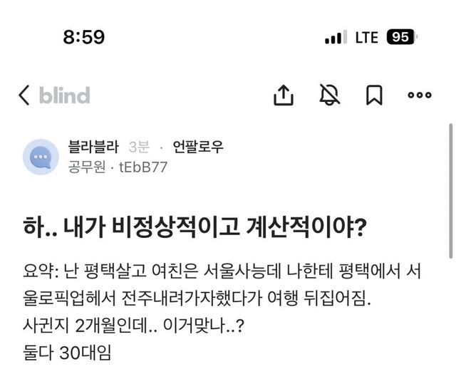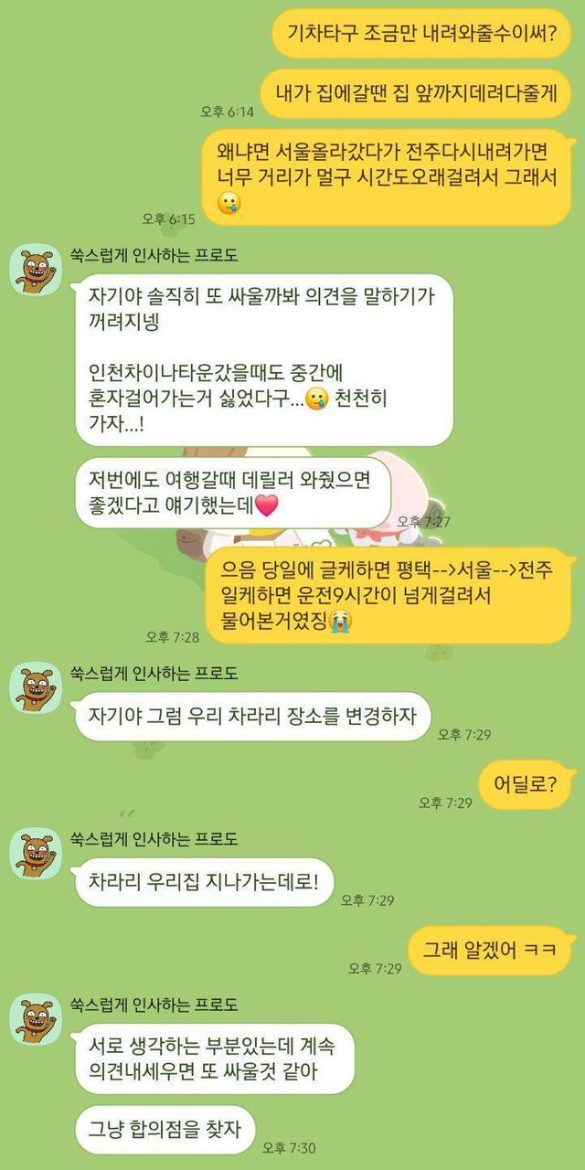 남자는 전주와 평택이 더 가까우니 내려와달라함