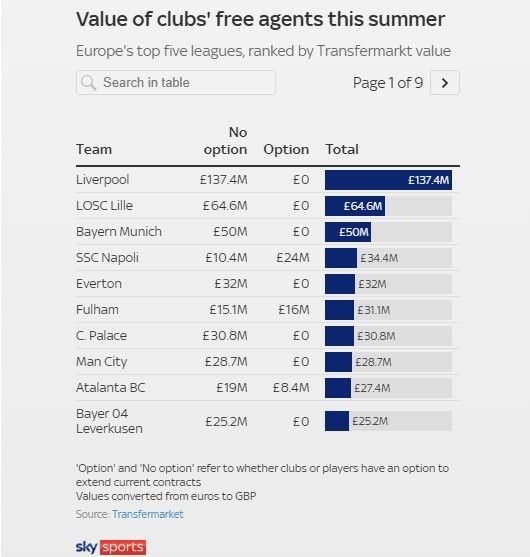 영국 중계채널 '스카이 스포츠'는 23일 "리버풀은 다가오는 여름에 자유 계약(FA) 신분으로 떠나는 선수로 인해 1억 3700만 파운드(약 2600억원) 손해를 기록할 것이다"라며 "이는 유럽 5대 리그 다른 클럽보다 압도적인 손실이다"라고 밝혔다. 매체는 독일 이적시장 전문 사이트 '트란스퍼마르크트'를 참고했다.