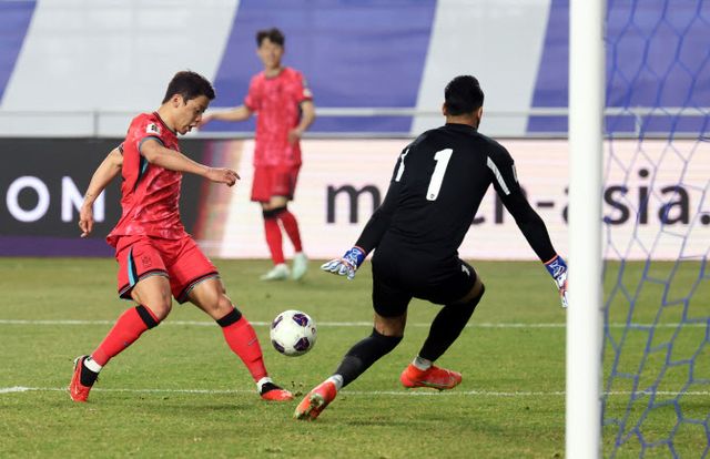 다시 측면을 노린 한국이 결정적인 기회를 잡았다. 후반 27분 설영우가 상대 수비수를 완전히 제치며 페널티박스 안으로 들어왔다. 문전을 향해 올린 크로스를 이재성이 방향만 바꿨으나 살짝 벗어났다.