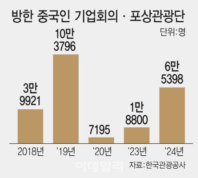 한 중국 전담 여행사 대표는 “한국 단체여행을 금지한 한한령이 2년 전 해제됐지만, 중국 현지에선 대규모 단체 방한에 여전히 정부 눈치와 반응을 살피는 분위기가 남아 있다”며 “중국 포상관광단의 리드 타임(준비 기간)이 2개월 내외로 짧은 만큼 한중 양국 간 화해 분위기가 조성되면 과거 아오란, 중마이와 같은 대형 포상관광단 방한도 재개될 수 있다”고 말했다.