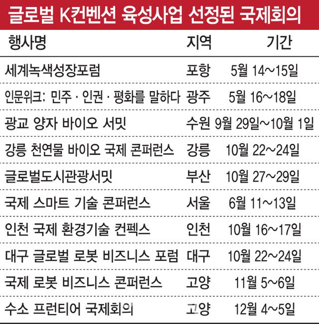 올해 글로벌 K-컨벤션 육성 지원대상은 ‘지역 시그니처’와 ‘K-유망’, ‘K-대표’ 국제회의 총 3개 부문 가운데 2개 부문, 10건의 토종 국제회의를 선정했다. 최상위 단계로 개최 이력이 10년 이상인 행사가 대상인 K-대표 국제회의는 올해 선정에서 제외됐다.