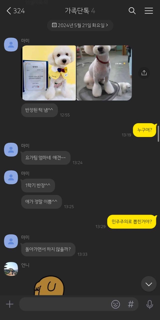 모르는 개가 반장됐다고 톡옴…,,