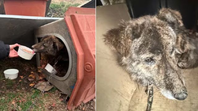 목에는 긴 목줄이 채워져 있어 도망갈 수 없는 상황이었다. 개 주인은 “긴급한 상황에 차마 목줄을 풀어줄 수 없었다. 잘 부탁드린다”는 말을 남겼다고 한다.