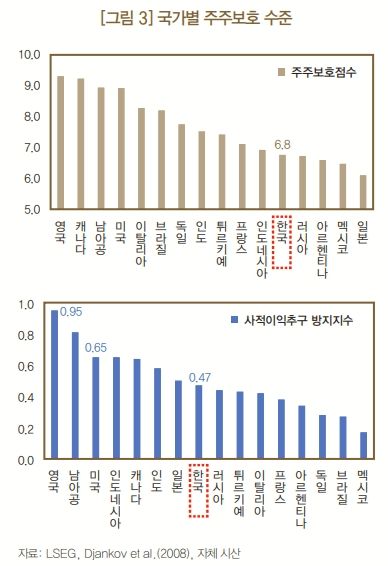 또한 주주보호 점수와 유동주식 비중도 글로벌 평균에 비해 낮아, 기업의 지배구조 취약성과 함께 낮은 주주환원율이 기업가치 저평가의 원인으로 지목됐다.
