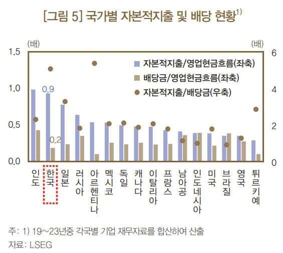 김선임 한은 국민소득총괄팀 차장은 “주주환원 확대는 특히 주주보호가 미흡한 기업에서 기업가치 제고에 효과가 있지만, 본질적으로는 활발한 투자활동이 더 중요하다”고 강조했다.