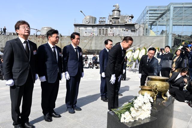 권 위원장은 특히 이날 추모식에 민주당 측 지도부가 불참한 것에 대한 입장을 묻는 질문에도 "모든 정쟁을 이 시간부로 멈춘다고 하고서 (민주당의 불참) 거기에 대해 설명하는 건 적절치 않다"고 말을 아껴 눈길을 끌었다.