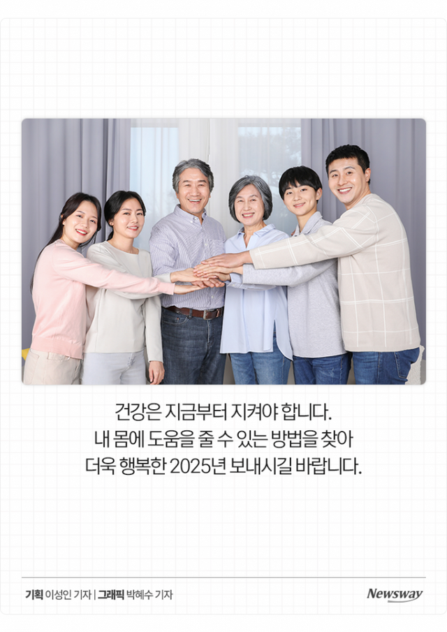 건강은 지금부터 지켜야 합니다. 내 몸에 도움을 줄 수 있는 방법을 찾아 더욱 행복한 2025년 보내시길 바랍니다.