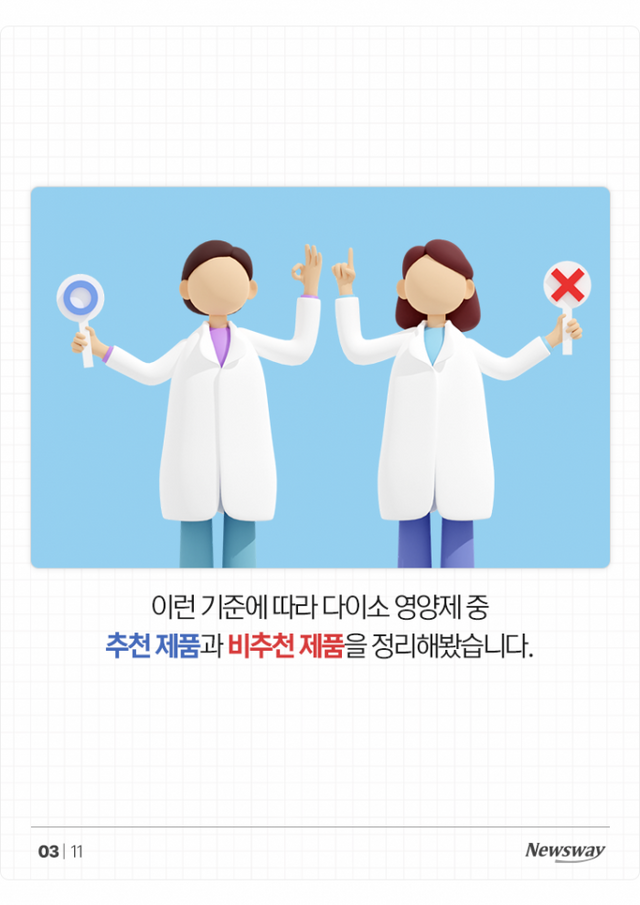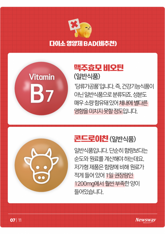 이런 기준에 따라 다이소 영양제 중 추천 제품과 비추천 제품을 정리해봤습니다.