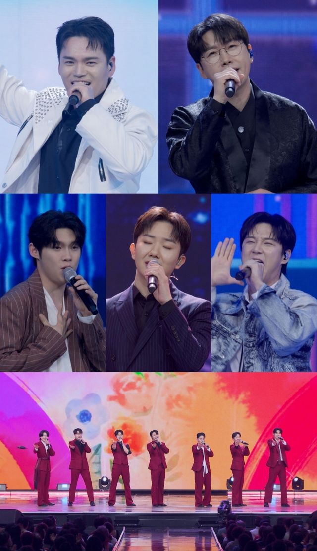 김용빈 ‘금수저’, 손빈아 ‘땡큐’, 천록담 ‘동해물과 백두산이’, 춘길 ‘이리오너라’, 최재명 ‘남자이니까’, 남승민 ‘월하정인’, 추혁진 ‘칙칙폭폭’. 이번 TOP7의 신곡은 제목만 들어도 센스 만점, 재치 만점이라 기대를 모은다. 갈라쇼 당일 관객들은 TOP7의 신곡 무대에 뜨거운 환호성을 쏟아냈다는 전언. 그야말로 역대급 현장 반응이었다는 TOP7의 7인 7색 신곡 무대는 ‘미스터트롯3 갈라쇼’ 2회에서 공개된다.