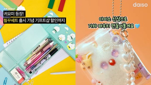 에어서울이 출시한 '필꾸세트'(왼), 다이소 '가챠 파우치'(오). / 에어서울, 다이소 공식 인스타그램
