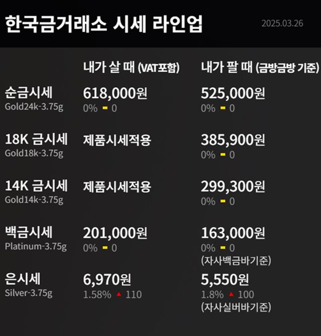 순금(24K) : 매입가 61만 8000원 / 매도가 52만 5000원