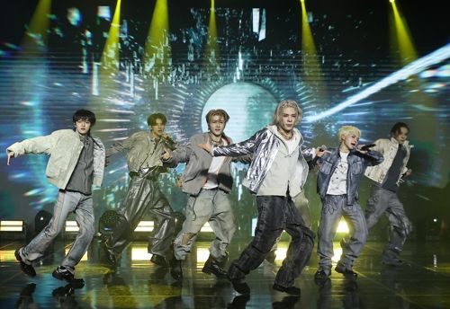 일본 보이그룹 원 오어 에이트가 26일 서울 강남구 일지아트홀에서 열린 디지털 싱글 'DSTM' 발매기념 쇼케이스에서 타이틀 곡 무대를 선보이고 있다. 2025.3.26