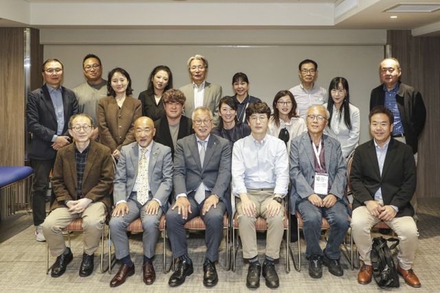 2023 재팬모빌리티쇼에서 한·일 자동차기자협회 임원진이 함께 모여 단체 사진을 촬영하고 있다. 사진=한국자동차기자협회 제공