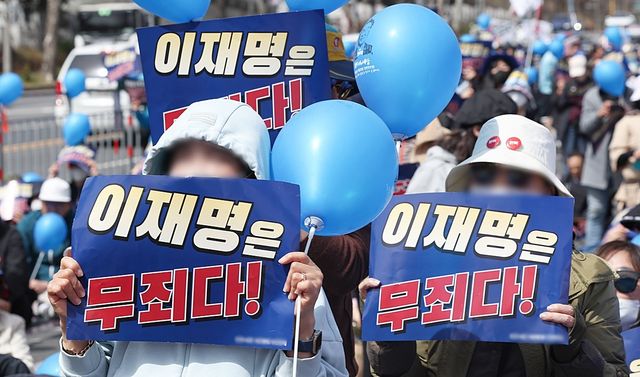 이재명 더불어민주당 대표 지지자들이 무죄를 촉구하는 피켓을 들고 있다. 자료 사진 / 연합뉴스