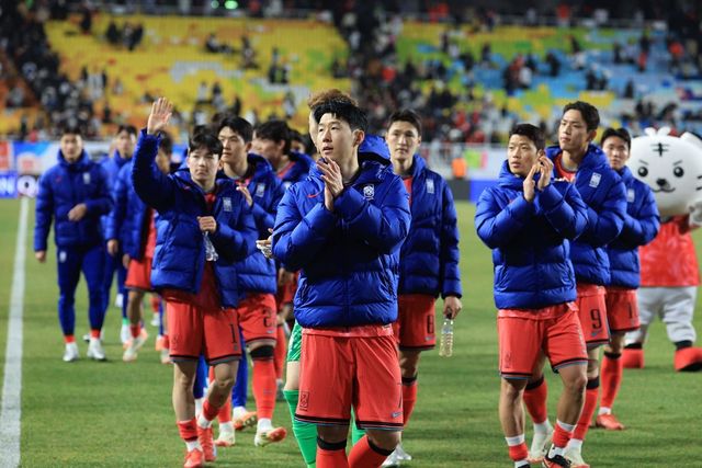 2026 국제축구연맹(FIFA) 북중미 월드컵 아시아 3차 예선 B조 8차전 요르단과의 경기를 끝내고 팬들에게 인사하는 한국 축구대표팀 선수들 / 뉴스1