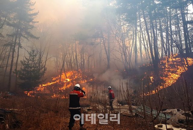 이날 불은 인근에서 그라인더 작업을 진행하다 불꽃이 인근 산림으로 튀면서 발생해 건조한 날씨에 강풍까지 겹치며 불길이 빠르게 확산되면서 번진 것으로 소방당국은 추정하고 있다.