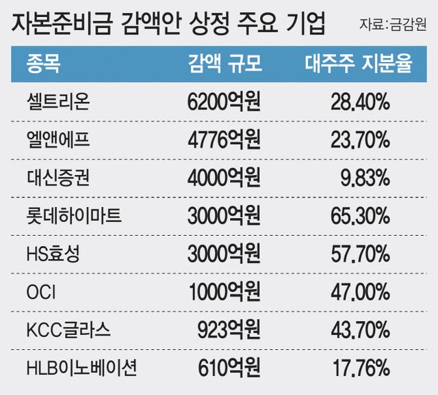지난해 2023년 36곳이던 감액 배당 도입 기업은 지난해 70곳으로 늘었는데, 올해 또 두 배 가까이 증가한 셈이다. HS효성과 셀트리온 외에도 우리금융, 엘앤에프(066970), HLB이노베이션(024850), 롯데하이마트(071840), 리가켐바이오(141080) 등이 주총 안건에 자본준비금 감액을 상정했다.