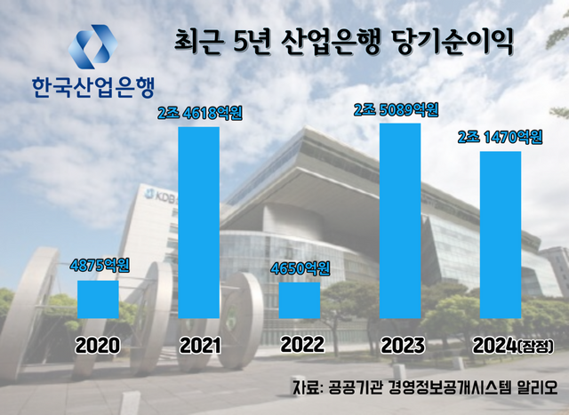 26일 공공기관 경영정보공개시스템 알리오에 따르면 산업은행의 지난 5년 당기순이익은 △2020년 4875억원 △2021년 2조 4618억원 △2022년 4650억원 △2023년 2조 5089억원 △2024년 2조 1470억원(잠정)을 기록했다.