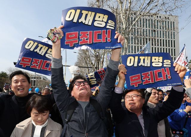 이 대표는 이날 무죄를 선고받은 뒤 법원 앞에서 “이 당연한 일들을 끌어내는데 이 많은 에너지가 사용되고 국가 역량이 소진된 것이 참으로 황당하다”며 “검찰과 정권이 이재명을 잡기 위해 증거를 조작하고 사건을 조작하느라 쓴 그 역량을 산불 예방이나 국민 삶 개선을 위해 썼다면 얼마나 좋은 세상이 됐겠나”라고 말했다.