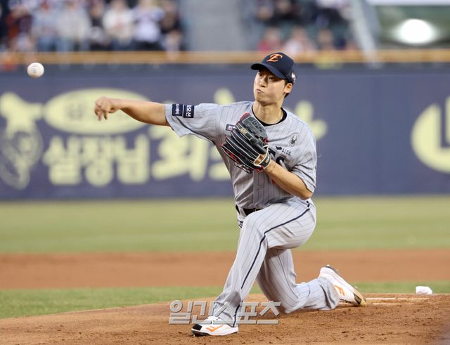 하지만 첫 경기부터 패전 위기에 놓였다. 2회까진 실점이 없었다. 엄상백은 1회 1사 후 문성주와 오스틴 딘에게 연속 안타를 맞았지만, 문보경에게 2루수 병살타를 유도해 위기에서 탈출했다. 이어 2회에도 김현수에게 볼넷을 내주고 박동원에게 안타를 맞았다. 하지만 박동원이 2루로 뛰다 태그아웃당했고, 후속 박해민은 3구 삼진으로 물러났다.