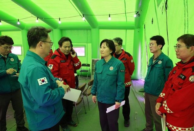 [와이뉴스] 송미령 농림축산식품부 장관은 3월 26일 오후 경북 의성군 경북의성지역자활센터에 설치된 산불현장통합지휘본부(본부장 임상섭 산림청장)를 방문하여 산불 진화대원과 현장 관계자들을 격려하고, 주민 인명피해 방지와 진화대원 안전에 최선을 다해 줄 것을 당부했다.