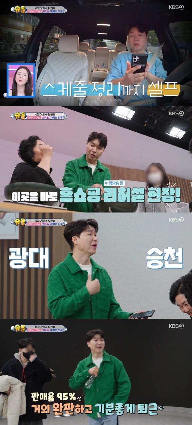 생방송임에도 즉석 애드리브와 깔끔한 진행을 보인 박수홍은 판매율 95%로 거의 완판을 기록하며 기분 좋게 퇴근했다.