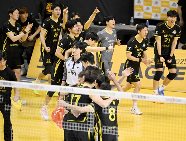 KB손해보험은 26일 의정부 경민대체육관에서 열린 도드람 2024~25 V리그 남자부 플레이오프(PO) 1차전에서 대한항공을 세트스코어 3-1(25-20 25-23 18-25 29-27)로 눌렀다.