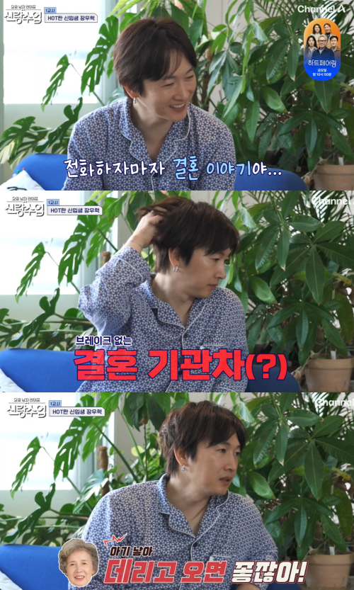이날 장우혁은 아침 식사를 한 후 엄마와 전화 통화를 했다. 장우혁 엄마는 “맨날 일만 하고 결혼은 안 하냐”며 장우혁 조카의 결혼을 언급했다.