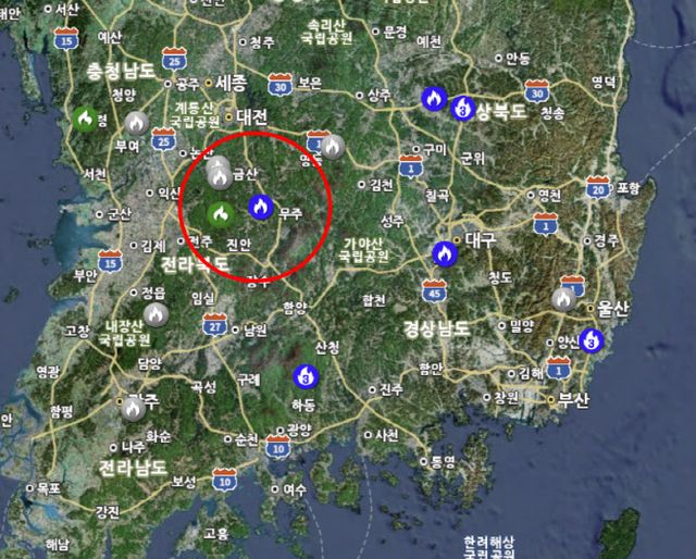 무주군은 오후 11시께 재난 문자를 통해 “부남면 대소리 819-1 인근 지역 산불발생. 대티, 유동, 대소, 율소마을 주민들은 대티마을회관으로 대피하시길 바란다”고 했다.