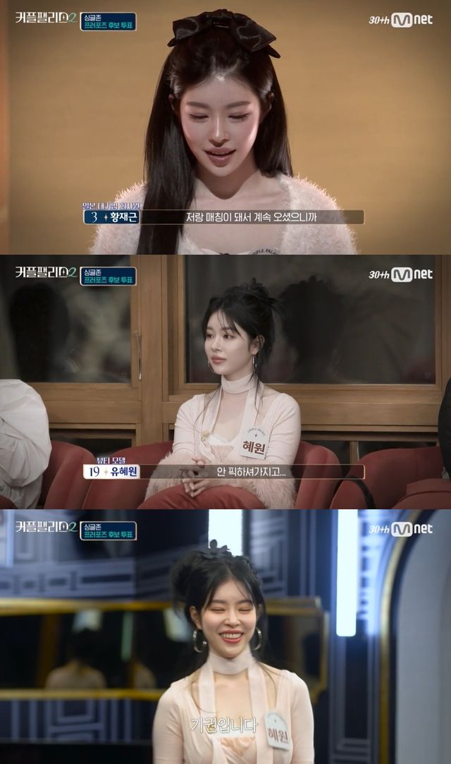 26일 방송된 Mnet '커플팰리스2' 8회에서는 황재근에게 투표받지 못한 유혜원의 프러포즈 투표 결과가 그려졌다.