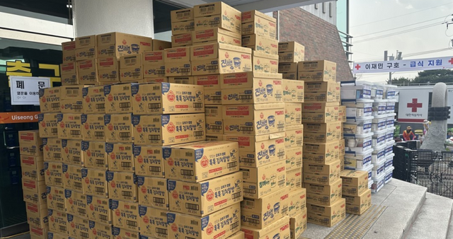 편의점 이마트24는 마스크와 음료, 에너지바 등 600여명분의 구호품을, 롯데 유통군은 생수와 컵라면, 에너지바, 마스크 등 생필품으로 구성한 긴급 구호물품을 각각 지원했다.